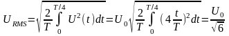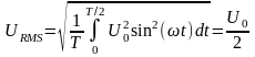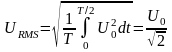 , где U0 - амплитудное напряжение, URMS - эффективное напряжение, T - период колебаний тока, t - время.
