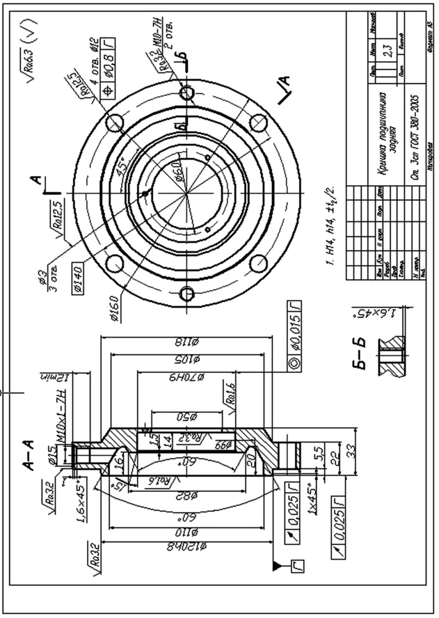 Как правило, назначение технических требований на деталь связано с ее положением в сборочной единице. Поэтому для дальнейшего анализа рассмотрим сборочный узел, в который входит крышка подшипника (рис. 5).