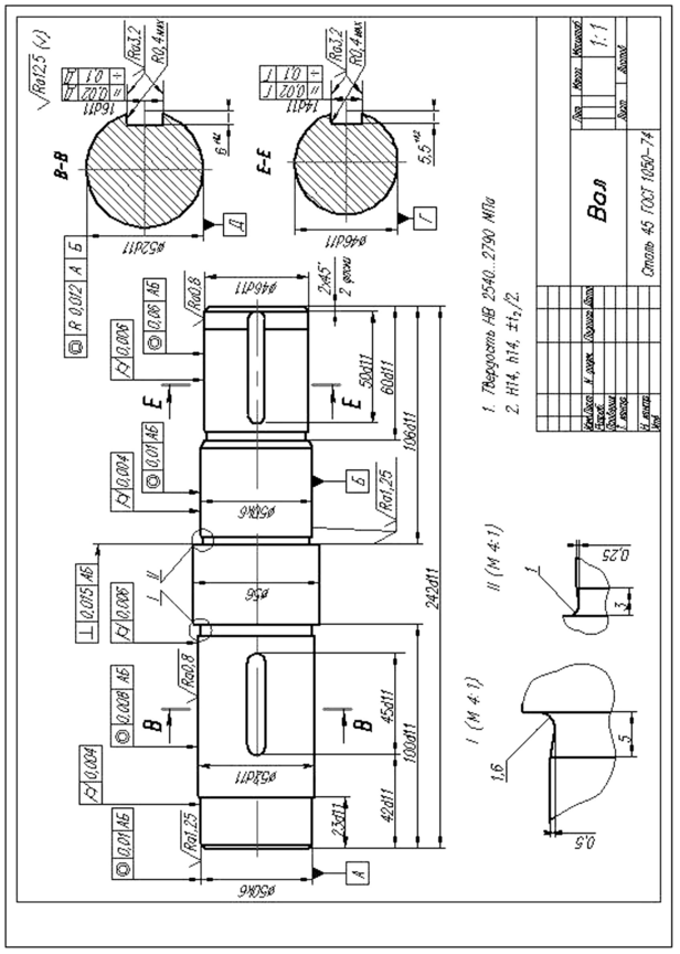 7)Размеры шпоночных пазов соответствуют ряду предпочтительных чисел, следовательно можно использовать стандартный инструмент, что снижает затраты на изготовление детали.