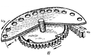Показанная на рис.в схема кривошипно-реечного механизма состоит из кривошипа 11; тяги 12, оканчивающейся рейкой; шестерен 13, соединенных с механизмом периодического движения 14 и далее с захватным органом.