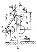 Формы сечений лотков для цилиндрических деталей, перемещающихся качением (а), скольжением (б); для дисков и колец, перемещающихся качением (в); для заготовок с головками (г); роликовые для цилиндрических и плоских заготовок (д); трубчатые (е), двухрельсовые (ж), однорельсовые (з)