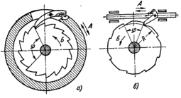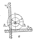 Схемы реечных преобразующих механизмов: а — с подвижным и б — с неподвижным ‚ зуб колеса.