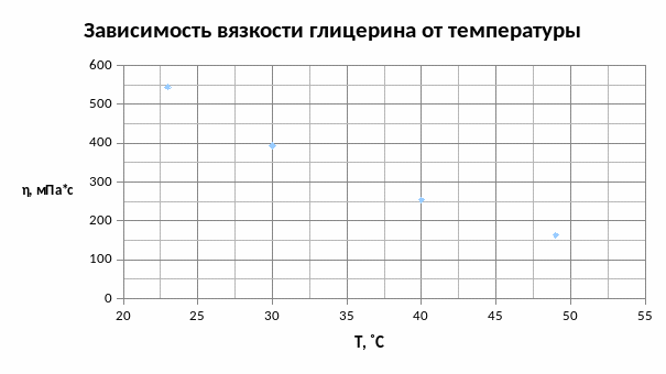 Мной были твердо установлены вязкости глицерина при различных температурах. Данные приведены выше.