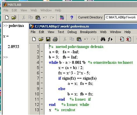 2.7.4. Пример М-файла: метод половинного деления.