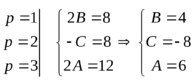 Неопределенные коэффициенты вычисляем методом частных значений, так как все корни многочлена знаменателя действительные и различные.