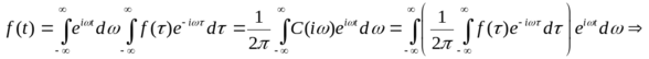 В интеграле Фурье в комплексной форме, записав показательную функцию по формуле Эйлера, получим: