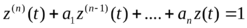 Решаем уравнение в общем виде, заметив, что X(p) и Z(p) умножены на один и тот же многочлен n-го порядка Qn(p).