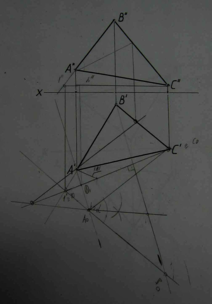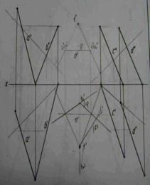 | 15.2. Определить угол между плоскостями, заданными прямыми а, пересекающаяся с b и c, параллельное d, применив способ вращения вокруг прямой уровня (h или f) | 14.2. Определить величину угла между прямой а и плоскостью треуг-ка ABC, применив способ вращения вокруг горизонтали или фронтали | 13.2. Определить величину угла между прямой а и плоскостью треуг-ка ABC способом вращения вкург горизонтали или фронтали |