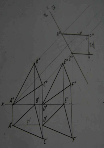 | 23.2. Определить расстояние между плоскостями треуг-ка ABC и треуг-ка DEF (ABC || DEF) способом замены плоскостей проекций | 22.2. Определить расстояние между параллельными плоскостями треуг-ка ABC и DEF способом замены плоскостей проекций | 21.2. Определить расстояние между прямыми а и b, применив способ замены плоскостей проекций |