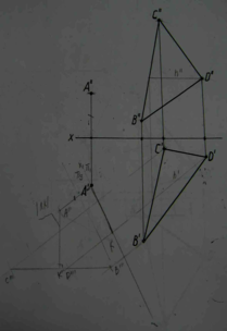 | 9.2. Определить величину угла между треуг-ком ABC и ABD, применив способ замены плоскостей проекций | 8.2. Определить угол между плоскостями треуг-ка ABC и ABD способом замены плоскостей проекций | 7.2. Определить величину угла между плоскостями треуг-ка ABC и треуг-ка ABD способом замены плоскостей проекций |