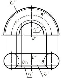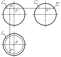 | 24. Способы преобразования. Условия преобразования способом вращения вокруг проецирующей прямой. Способы преобразования: а) Способ замены плоскостей проекций б) Способ плоскопараллельного перемещения в) Способ вращения вокруг проецирующей прямой Условия преобразования: 1) ось вращения i неподвижна и перпендикулярна плоскости проекций; 2) все точки фигуры перемещаются по окружностям, плоскости которых перпендикулярны оси i (рис. 30); 3) точки, лежащие на оси вращения i, неподвижны. | 25. Теорема Г. Монжа. Пример. Две поверхности 2-го порядка, вписанные или описанные около третьей поверхности второго порядка, пересекаются по двум плоским кривым второго порядка, плоскости которых проходят через прямую, соединяющую точки пересечения линий касания. (с.41/2; с.38/1) |