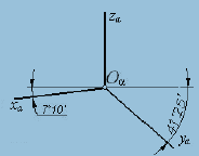 | 26. Аксонометрические проекции. Теорема К. Польке. Основная теорема аксонометрии (теорема К.Польке 1851г.) Три отрезка прямых произвольной длины, лежащих в одной плоскости и выходящих из одной точки под произвольными углами друг к другу, представляют параллельную проекцию трех равных отрезков, отложенных на прямоугольных координатных осях от начала. | 27. Что называется коэффициентом искажения по аксонометрическим осям? Укажите направление осей в прямоугольной изометрии. На осях x, y, z отложен отрезок е, принимаемый за единицу измерений по этим осям. В общем случае еx, еy, еz не равны е и не равны между собой. Отношения k = ex/e, m = ey/e, n = ez/e называются коэффициентами (или показателями) искажения по аксонометрическим осям. | 28. Что называется коэффициентом искажения по аксонометрическим осям? Укажите направление осей в прямоугольной диметрии. На осях x, y, z отложен отрезок е, принимаемый за единицу измерений по этим осям. В общем случае еx, еy, еz не равны е и не равны между собой. Отношения k = ex/e, m = ey/e, n = ez/e называются коэффициентами (или показателями) искажения по аксонометрическим осям.