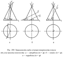 По каким линиям плоскость может пересечь коническую поверхность вращения окружность, эллипс, парабола, гипербола, треугольник -
