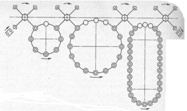 Рис. 9.12 Схема роторной линии с объединением разновремённых операций технологического процесса.