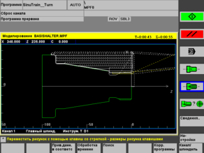 При необходимости на экран дисплея вызывается информация о режущем инструменте. Графически могут быть представлены схема инструмента, его данные, включая размеры, код, номер корректора, материал режущей части и др.