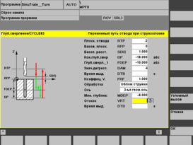 Оператор в процессе программирования выбирает требуемый по чертежу вариант из “меню” и вводит с пульта УЧПУ необходимые данные в предлагаемой последовательности. Введённые данные (графики, буквенно-цифровая информация) тут же высвечиваются на экране дисплея и, при необходимости, редактируются.