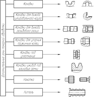 Рис. 6.2 Примеры дополнительных зон токарной обработки.