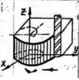 | 2. Типовой процесс цилиндрического фрезерования плоскостей, параллельных координатным плоскостям XOZ, YOZ, и прямых круговых цилиндрических поверхностей с осью вращения, параллельной оси координат OY. | 1 | Прямая, параллельная оси координат OX | Плоскость, параллельная координатной плоскости XOZ(вертикальная плоскость) | _ X | |