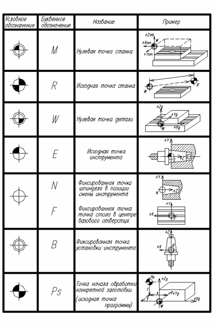 Для точного и правильного перемещения рабочих органов станка при отработке УП, на станках с ЧПУ задаются нулевые, исходные и фиксированные точки.