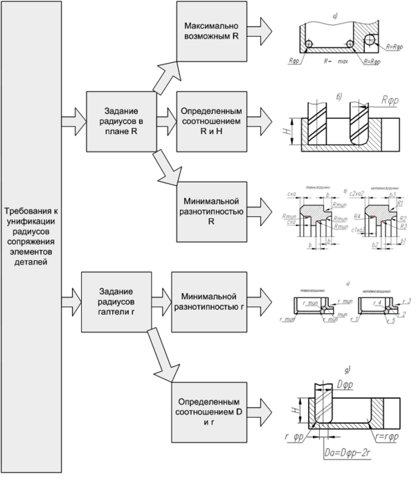 6.3.2. Требования к унификации радиусов сопряжения элементов деталей.