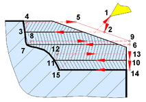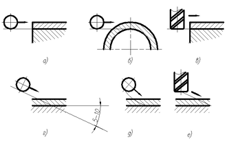 г,е- подход инструмента к обрабатываемой поверхности под углом 5-10°.