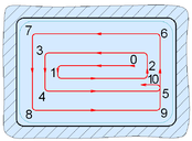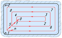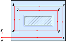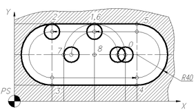 фрезерование, т.е. обход внешнего контура по часовой стрелке, внутреннего