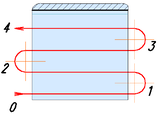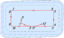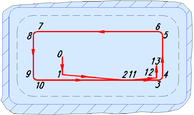 3) Траектория холостого хода инструмента представляет собой совокупность отрезков траектории соединяющих конечную точку траектории выхода из какого-либо инструментального перехода с начальной точкой врезания при выполнении следующего инструментального перехода.
