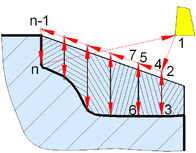 Рис. 7.35 Формирование траектории врезания с перемещением по оси Z: