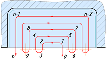где Н- шаг строки, а- угол между направлением ориентации строки и открытой стороны (рис.7.38).