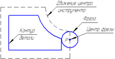 Рис.7.27 Движение центра инструмента при фрезеровании.