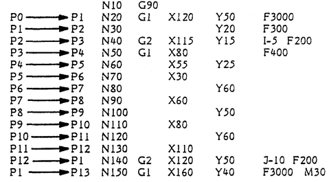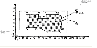 Начальная точка каждого участка интерполяции совпадает с конечной точкой предыдущего. Используют систему координат детали, являющуюся правой прямоугольной декартовой системой.