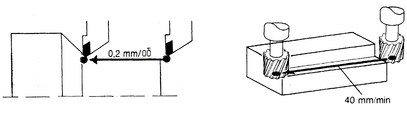 [СКОРОСТЬ ПОДАЧИ] - выражает рабочую скорость (F) , с которой выполняется движение. В случае отсутствия используется ранее запрограммированная скорость. Это означает, что в предшествующих кадрах должна быть запрограммирована скорость. В противном случае подается сигнал ошибки.