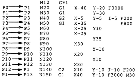 Рис. 9.2. Пример задания перемещений в абсолютных значениях (G90), в приращениях (G91).