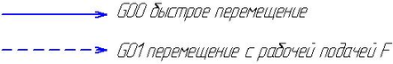 перемещение со скоростью рабочей подачи до запрограммированного размера (Z);
