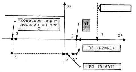| G82 растачивание | рабочая подача | да | нормальное | Ускоренное перемещение к R1 или R2 |