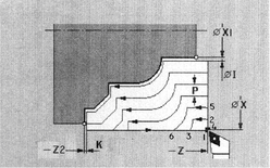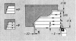 С помощью циклов G70,G71 задается следующая последовательность движений: