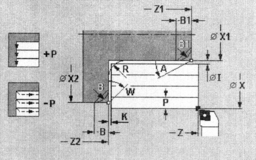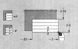 P глубина резания: Распределение проходов так рассчитывается, что избегается «шлифовального прохода» и подача является <= l