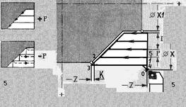 перемещение инструмента с подачей к «конечной точке Z2», или к «конечной точке Х2» или к избираемому элементу контура.