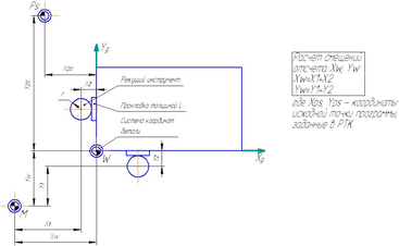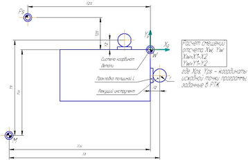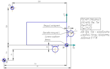 X1 – вычисляемое перемещение по координате X, на которое необходимо переместить рабочий орган станка, чтобы найти исходную точку программы.