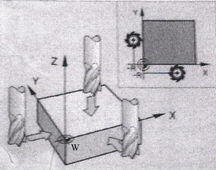 Система координат детали W задана программистом на углах детали (рис. 10.18.).
