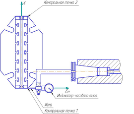 Рис. 10.14. Точки измерения положения приспособления в направлении оси Х.