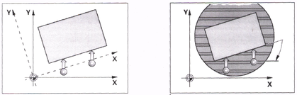 а) Компенсация через вращение системы координат детали.