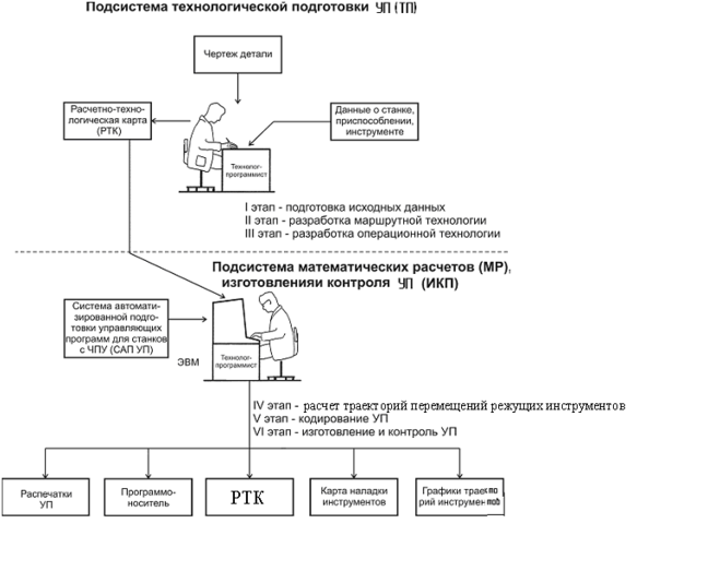 Указанные программы составляют программное обеспечение САП УП, которые находятся на машинных носителях информации ЭВМ – магнитных дискетах, дисках. Для работы в системе автоматизированной подготовке УП это программное обеспечение заносится в оперативную память ЭВМ.