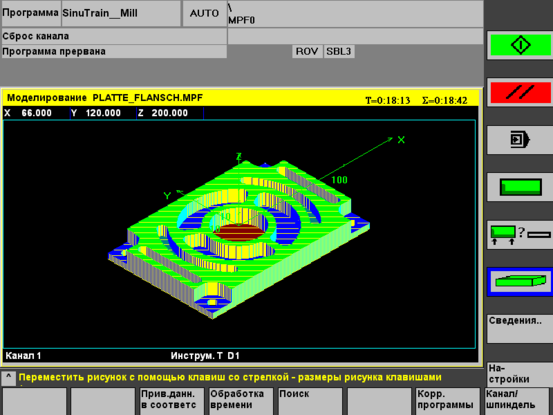 По желанию оператора, возможно графическое представление всего процесса обработки детали как в плоскостном (рис. 5.15а), так и в объёмном изображении (рис. 5.15б). Такой вид информации на экран дисплея делает её обзорной и легко понимаемой.