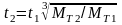 где: R2,R1 - расстояния (в м) от центров двух взрывов до некоторых точек 1 и 2, в которых параметры ударной волны этих взрывов равны между собой; MT2, MT1 - масса зарядов (точнее: тротиловые эквиваленты масс зарядов); τ2, τ 1 - время с момента взрыва до прихода ударной волны в эти точки.