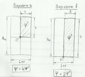 для q1-2 , определяется как СУММА (или ПРОИЗВЕДЕНИЕ) ЧАСТНЫХ коэффициентов облученности ’ , полученных для прямоугольников каждого составляющего типового модуля факела пламени, в зависимости от ВАРИАНТА СХЕМЫ составления ВСЕЙ площади ОБЩЕЙ ПОВЕРХНОСТИ ВСЕГО ФАКЕЛА пламени.