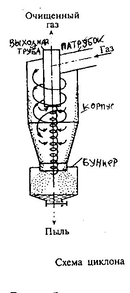 (1.1.3) ЦИКЛОН - обеспечивают СРЕДНЮЮ очистку частиц пыли размером 10-50 мкм и наиболее широко распространены и имеют разнообразное конструктивное исполнение.