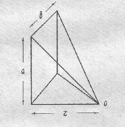 Будем считать, что доля энергии, которая попадет в исследуемую точку 0, пропорциональна телесному углу, образованному лучами, исходящими из этой точки и направленными к вершинам прямоугольника a x b . ( В соответствии с законом Стефана-Больцмана, относящимся к полусферическому излучению, такое допущение вполне корректно).