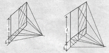 Размеры пламени горящей жидкости ,имеющей на практике форму конуса, в расчетах заменяется эквивалентным прямоугольником, у которого