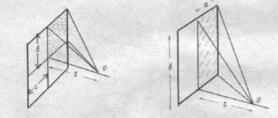 пламени условно представляют составляющими его типовыми прямоугольными модулями, в виде прямоугольных площадок со сторонами b и a . В каждом таком типовом модуле (прямоугольнике) принимаются (и обозначаются) : a - меньший из размеров, b - больший из размеров.